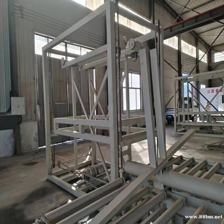 5、自动装架:自动装架就是把托板拍子组合在一起,使其达到长期保持相当的精度,使板材初凝时就在平面误差不超过2的环境中定型,从而在生产厚板的过程中使其板面保持平整。另外由于是自动装架子,不用人抬,机器手搬运。从而大大减少了人为对板材造成的损坏。也一改过去手动设备只能生产12毫米以内及长度不超过2440mm的板材的历史。现在我公司的设备,亦可以生产10m长,50mm厚的板材。